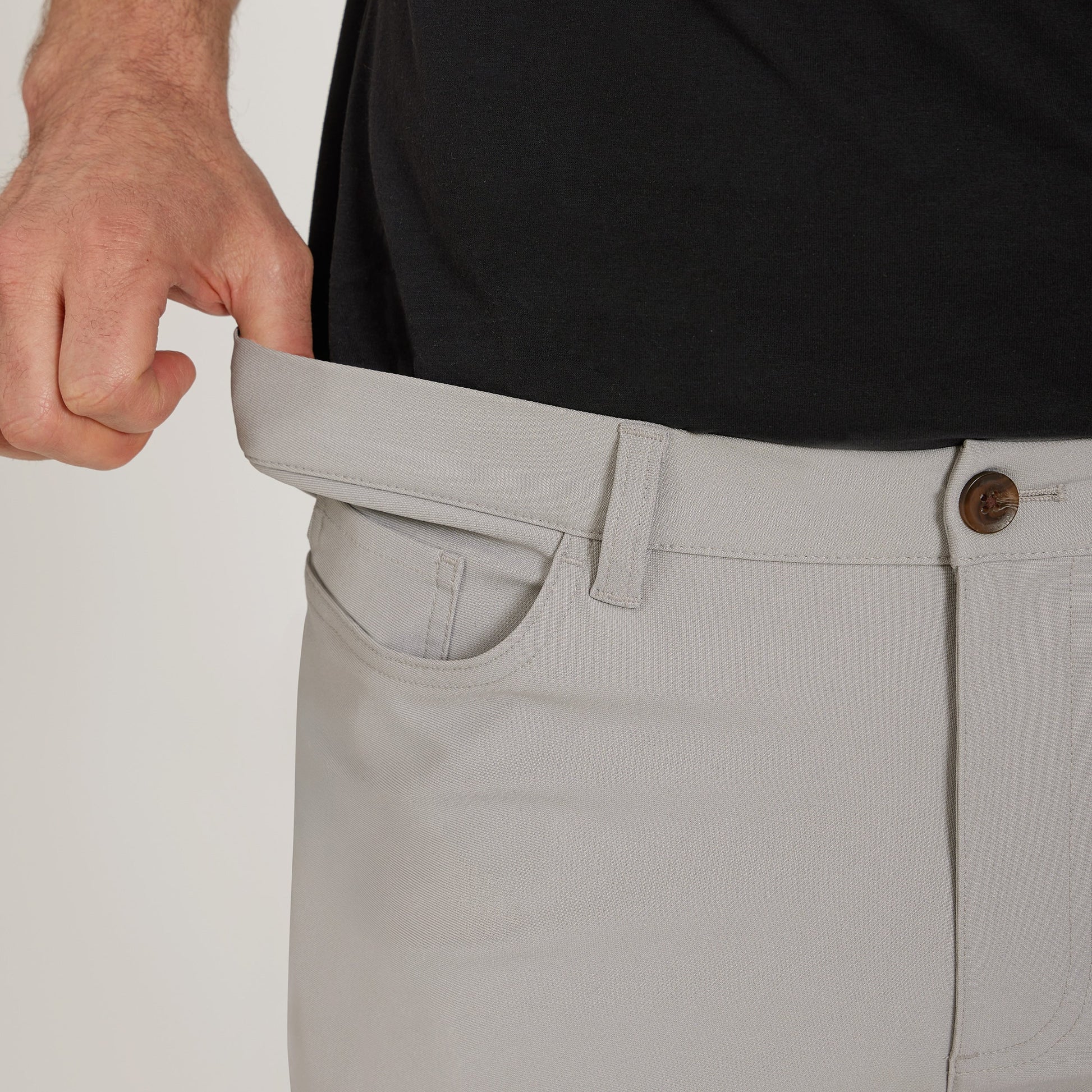 - Built with belt loops and a discreet elastic at the back waistband that provides up to an extra 1” for superior comfort—perfect for long flights, commuting, if in-between sizes or experiencing a little weight gain.